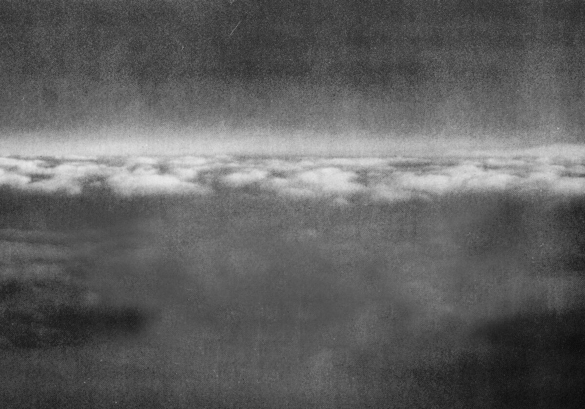 Pictures of the sky. A sequence of eight images, retouched after being selected from my collection of promotional airline postcards.
