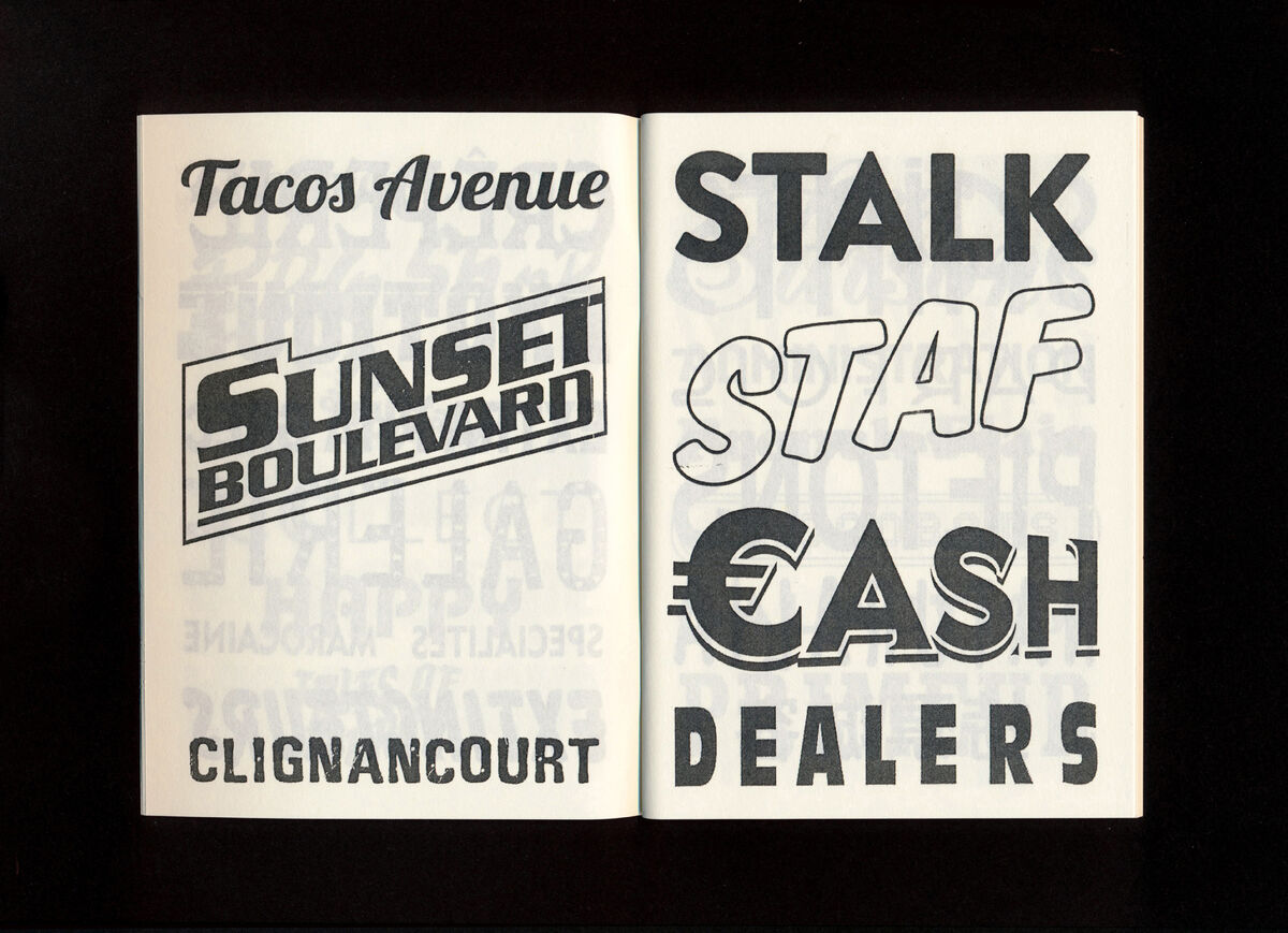 The content of the books is recorded with a photo camera while strolling through the public urban space of the respective city. Subsequently the captured type is cut out and reassembled.