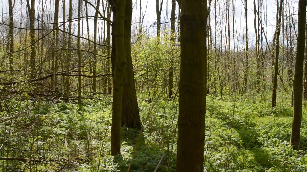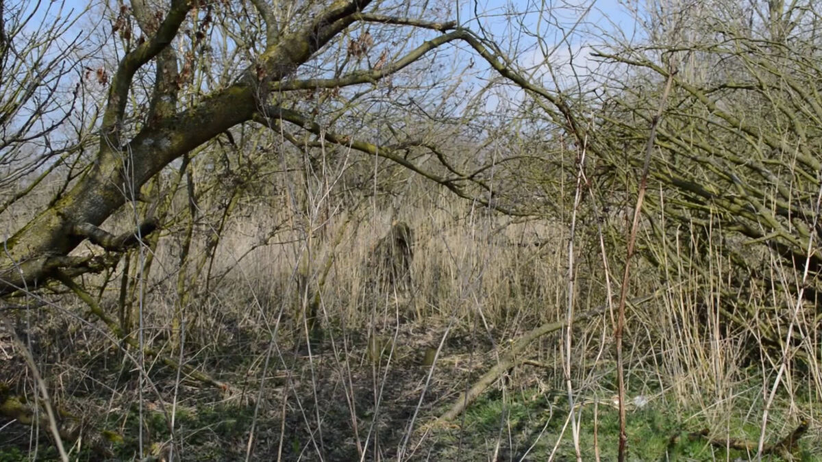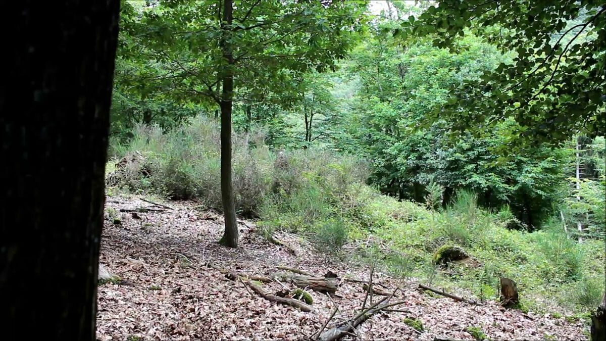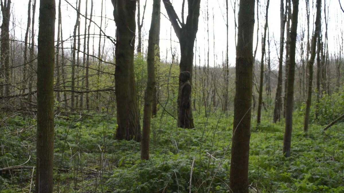 Auf unheimliche Weise ist die geteilte Welt auch Thema von Manuel Bodens Video Woodland. Es besteht aus einer Abfolge von 16 Orten, die mit statischer Kamera gefilmt werden und für jeweils circa Sieben-Sekunden-Einstellungen im Wechsel gezeigt werden. Man sieht abwechselnd u. a. unaufgeräumte Waldausschnitte, dichtes Gestrüpp, Bodendecker, umgestürzte Bäume, einen Hügel, eine weite Heidelandschaft und sanft wiegende Gräser. Zunächst entsteht der Eindruck einer Wildkamera, wie sie Jäger:innen für die Beobachtung von Tieren installieren, oder auch einer Überwachungskamera, bei der der dargestellte Landschaftsausschnitt reiner Hintergrund für ein erhofftes oder erwartetes Ereignis ist. Doch nach einer Weile beginnt man nach Strukturen im Gehölz zu suchen, nach Zeichen tierlichen Lebens, nach Wetterphänomenen und richtet seine Aufmerksamkeit schlicht auf das, was ist. Aus dieser kontemplativen Schauanordnung wird man aber jäh herausgerissen, sobald man bemerkt, dass es auf einigen Aufnahmen unerklärliche Bewegungen im Unterholz gibt. Nachdem man sich darauf eingestellt hat, mit den Augen im Gewirr von Ästen und Gräsern quasi diese kurzen Momente zu erjagen, glaubt man plötzlich in jedem Schatten ein getarntes Lebewesen zu erkennen. Die dunkle Form in der Ferne wird zum Bären, Wildschwein oder zur hockenden menschlichen Gestalt im Tarnüberwurf; ein bemooster Baumstumpf wird zum haarigen Kopf. Es scheint jemand im Hinterhalt zu liegen und sich auf die Kamera zuzubewegen. Sofort kehrt sich die Hierarchie zwischen Beobachter in und Beobachtetem um und die dunkle Seite des Voyeurismus manifestiert sich. Der Wald hat plötzlich Augen und der Jäger wird zum Gejagten.