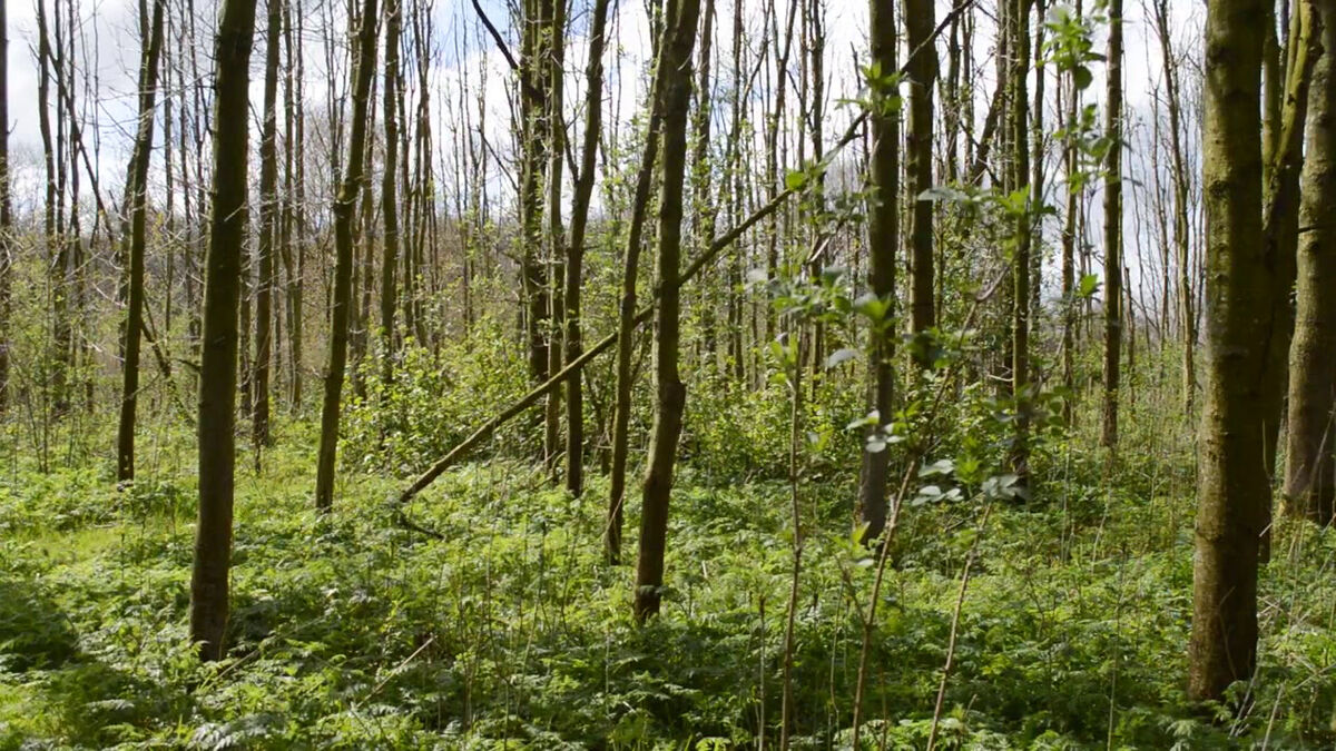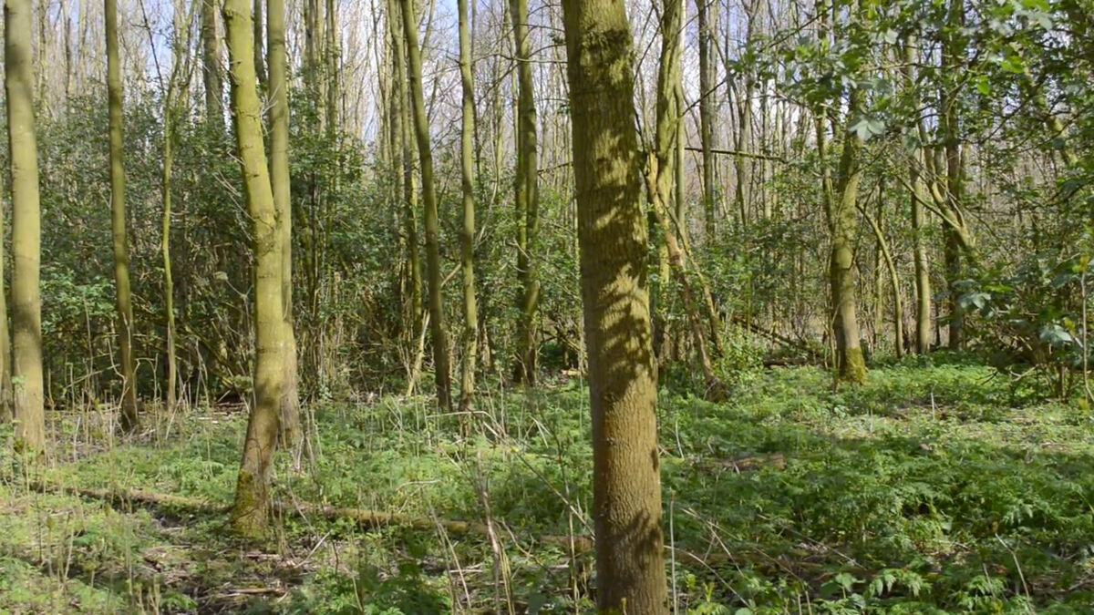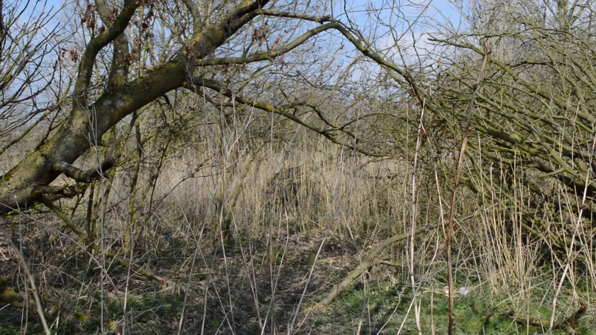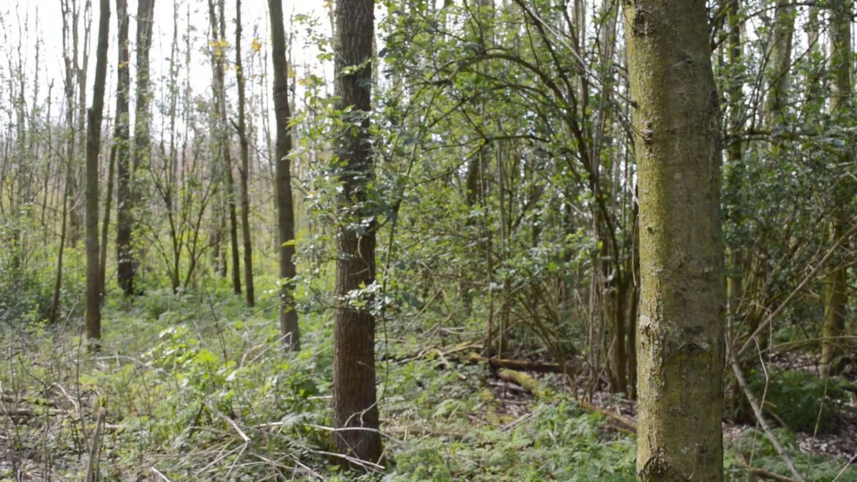 Auf unheimliche Weise ist die geteilte Welt auch Thema von Manuel Bodens Video Woodland. Es besteht aus einer Abfolge von 16 Orten, die mit statischer Kamera gefilmt werden und für jeweils circa Sieben-Sekunden-Einstellungen im Wechsel gezeigt werden. Man sieht abwechselnd u. a. unaufgeräumte Waldausschnitte, dichtes Gestrüpp, Bodendecker, umgestürzte Bäume, einen Hügel, eine weite Heidelandschaft und sanft wiegende Gräser. Zunächst entsteht der Eindruck einer Wildkamera, wie sie Jäger:innen für die Beobachtung von Tieren installieren, oder auch einer Überwachungskamera, bei der der dargestellte Landschaftsausschnitt reiner Hintergrund für ein erhofftes oder erwartetes Ereignis ist. Doch nach einer Weile beginnt man nach Strukturen im Gehölz zu suchen, nach Zeichen tierlichen Lebens, nach Wetterphänomenen und richtet seine Aufmerksamkeit schlicht auf das, was ist. Aus dieser kontemplativen Schauanordnung wird man aber jäh herausgerissen, sobald man bemerkt, dass es auf einigen Aufnahmen unerklärliche Bewegungen im Unterholz gibt. Nachdem man sich darauf eingestellt hat, mit den Augen im Gewirr von Ästen und Gräsern quasi diese kurzen Momente zu erjagen, glaubt man plötzlich in jedem Schatten ein getarntes Lebewesen zu erkennen. Die dunkle Form in der Ferne wird zum Bären, Wildschwein oder zur hockenden menschlichen Gestalt im Tarnüberwurf; ein bemooster Baumstumpf wird zum haarigen Kopf. Es scheint jemand im Hinterhalt zu liegen und sich auf die Kamera zuzubewegen. Sofort kehrt sich die Hierarchie zwischen Beobachter in und Beobachtetem um und die dunkle Seite des Voyeurismus manifestiert sich. Der Wald hat plötzlich Augen und der Jäger wird zum Gejagten.
